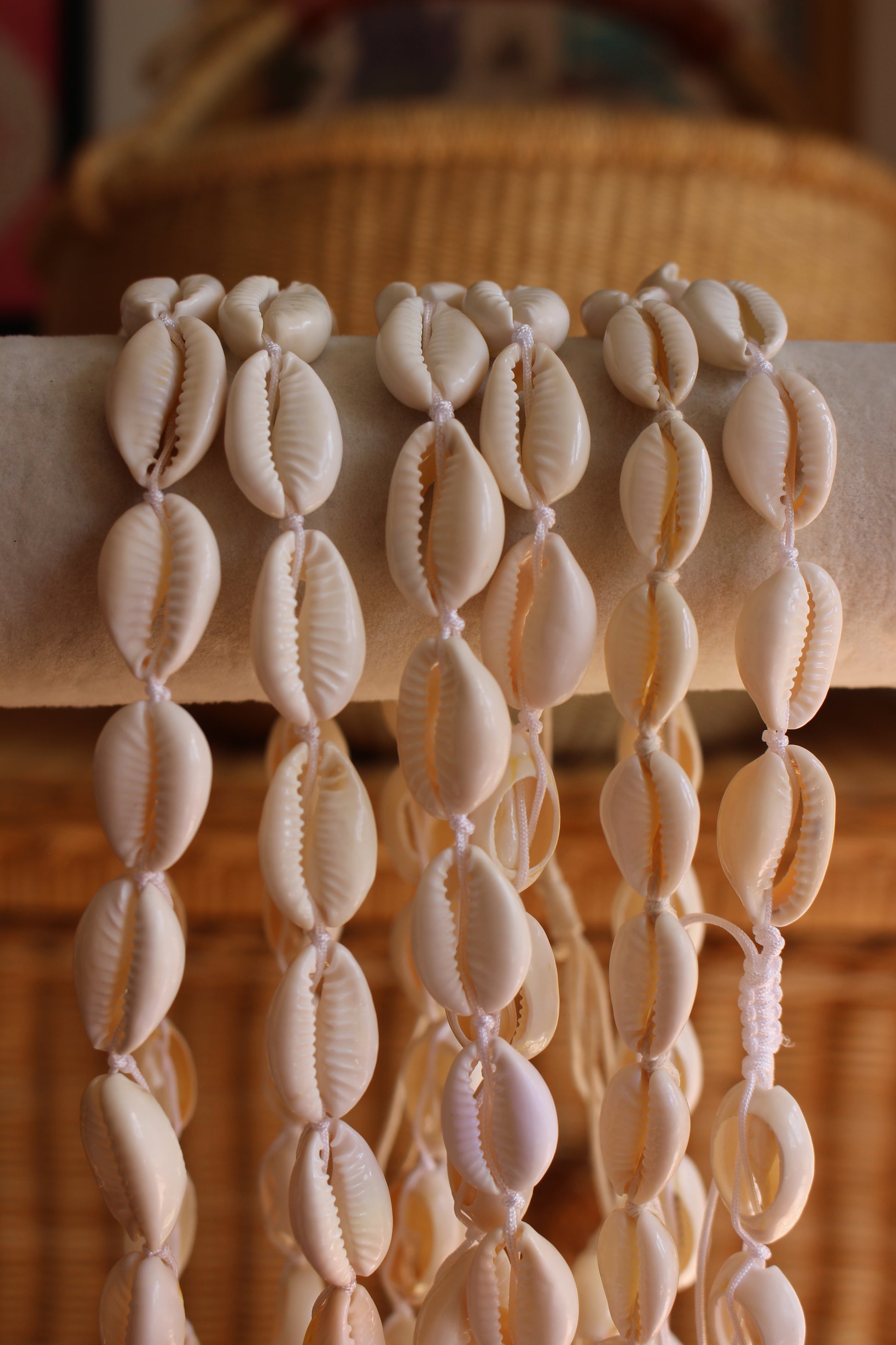 Classic Cowrie shell beaded necklace on an adjustable thread with knots