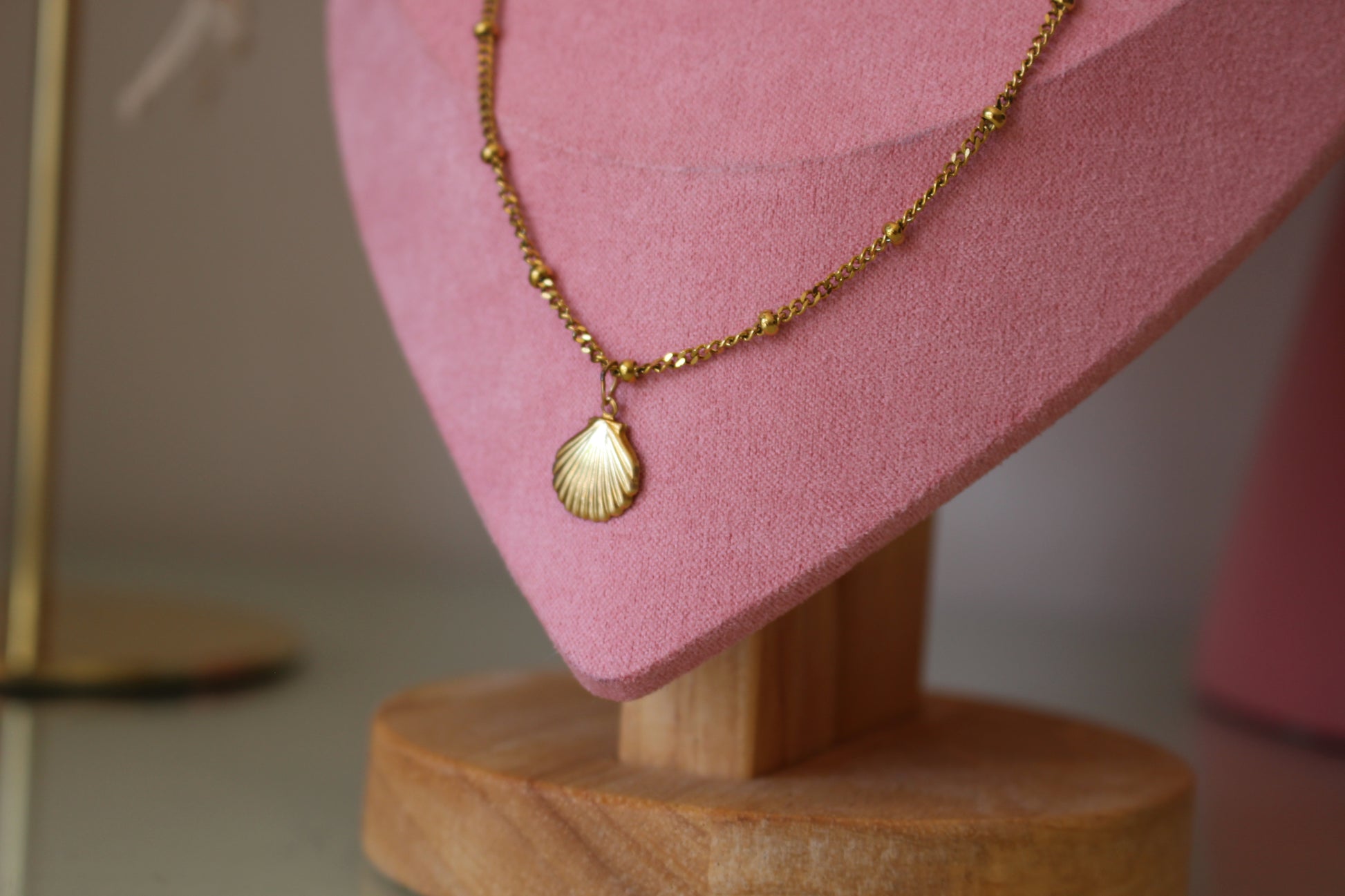 Stainless steel chain, 14k Gold Fill Shell Pendant